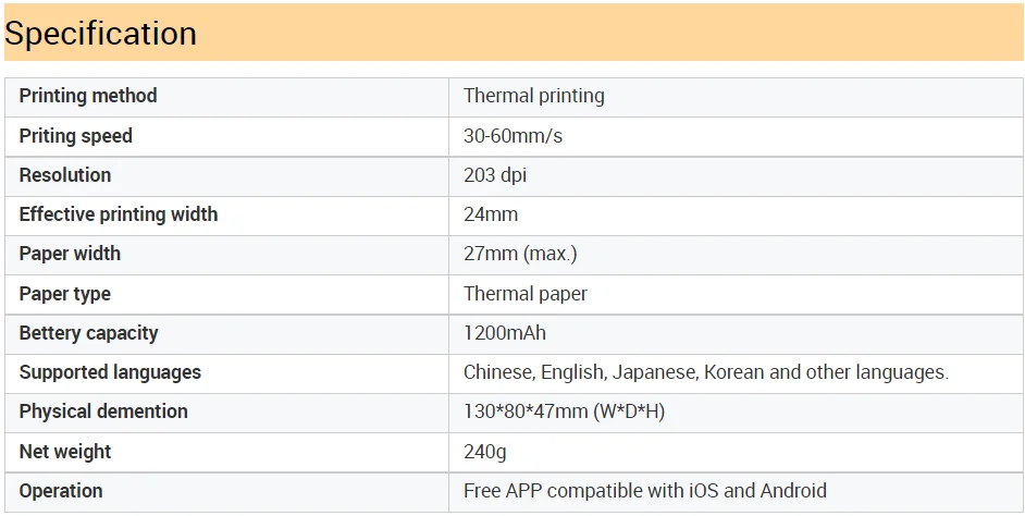 Type: Pocket Printer