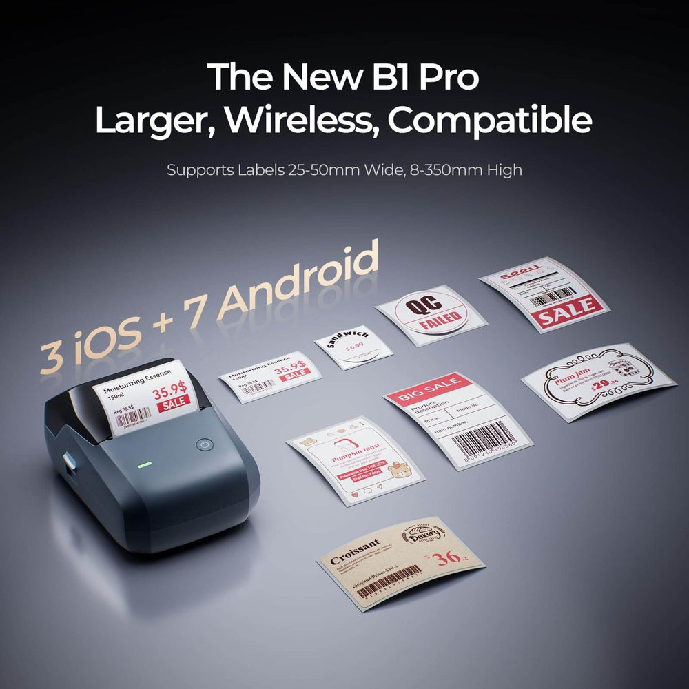 【Multi-Device Bluetooth Connectivity】NIIMBOT B1 Pro label maker connects simultaneously to 3 iOS and 7 Android devices, plus 1 Windows PC. It serves as a practical solution for multi-person item organization in supermarkets, offices, and small businesses