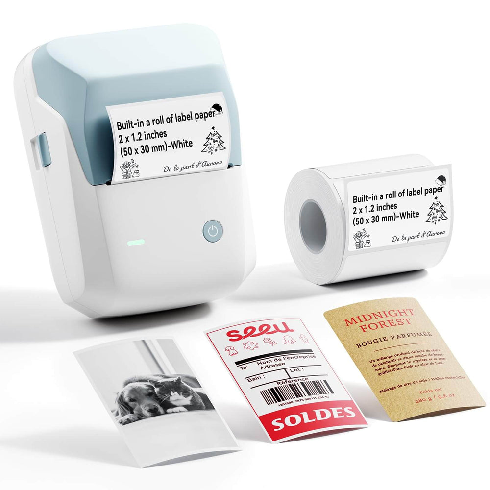 【NOTE】Built-in 2 x 1.2-inch (50 x 30 mm) label roll, compatible with most NIIMBOT label printers. Other label paper models compatible with B1 PRO (shown in image) – sold separately, for display only