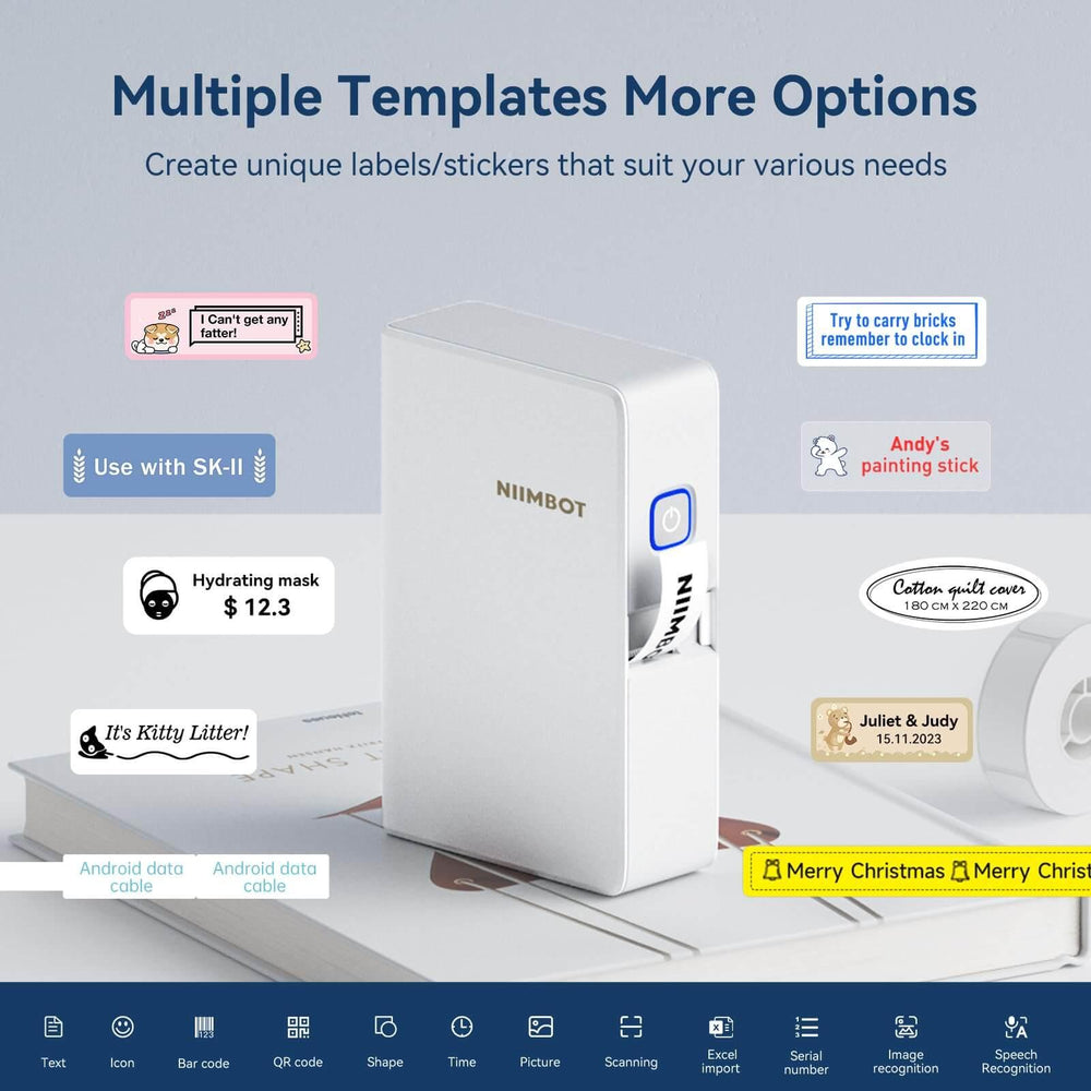 Own R&D free edit app "NIIMBOT", Auto identify the label paper size with RFID.