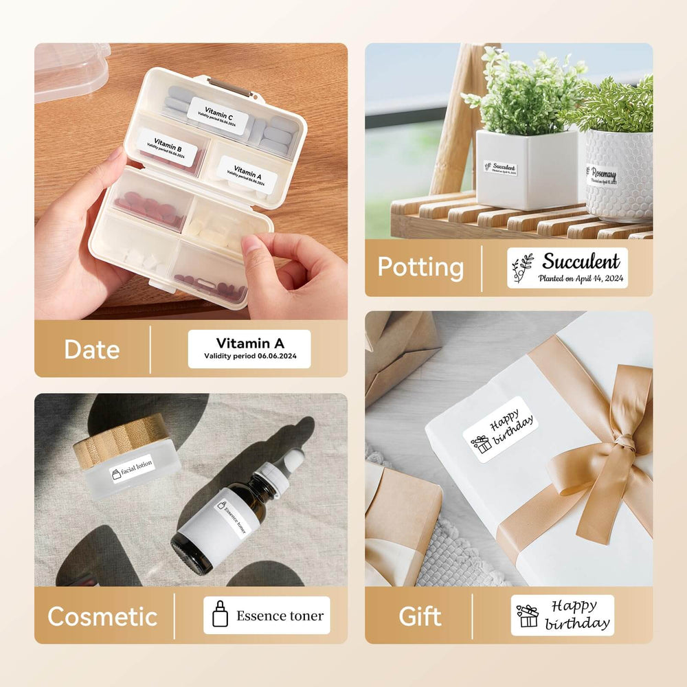 This label maker tape is specially compatible for NiiMbot D11 and D110 D101 label printer, water resistant, oil resistant and friction resistant. Multi-Purpose smooth direct thermal label paper, making your own stickers for any occasion.